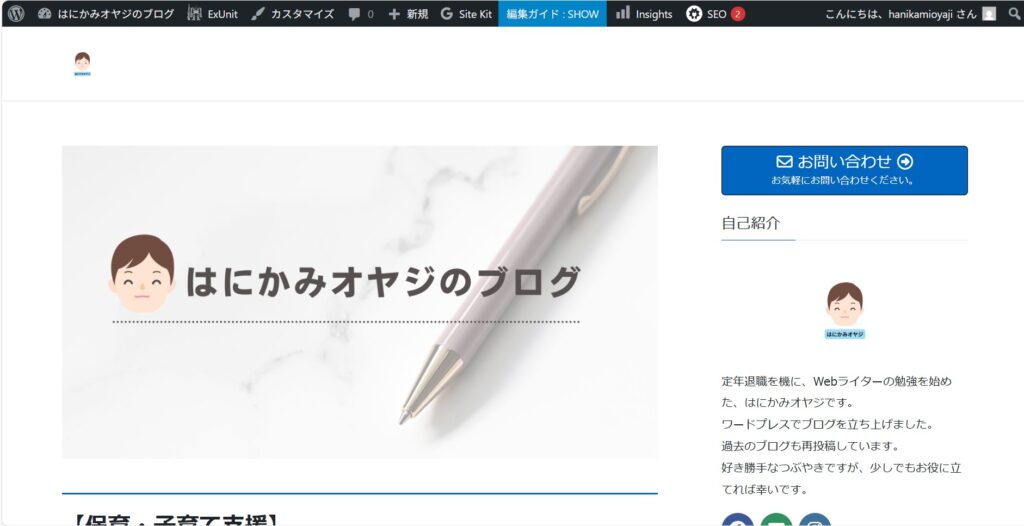 【はにかみオヤジのブログ】 定年退職を機に、Webライターの勉強を始めた、はにかみオヤジです。ワードプレスでブログを立ち上げました。過去のブログも再投稿しています。好き勝手なつぶやきですが、少しでもお役に立てれば幸いです。